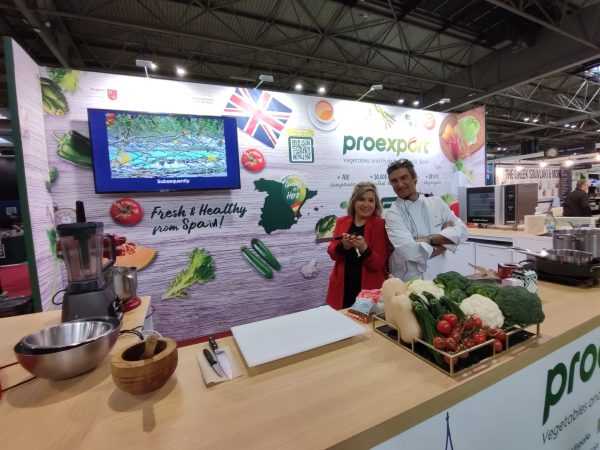 Proexport contó en Birmingham con un llamativo stand de 18 m2, que ha sido subvencionado por la Consejería de Agua, Agricultura, Ganadería y Pesca de la Región de Murcia. Restauradores, personal y socios de la asociación ofrecerán a los visitantes impactantes show cookings en directo y cientos de degustaciones de tapas, ensaladas, green smoothies, sopas y cremas vegetales. “Fusionaremos lo mejor de nuestra gastronomía saludable, basada en verduras de otoño-invierno, con otros sabores típicos británicos. Daremos visibilidad al productor español y animaremos a los consumidores británicos a buscar en sus lineales las hortalizas españolas y se animen a cocinarlas en casa”, según Gómez.