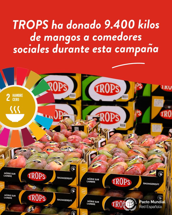 Un año más, y dentro del compromiso de TROPS con la sociedad TROPS, líder en producción y comercialización de fruta tropical en España, han donado un total de 9.400 kilos de mangos a comedores sociales de la provincia de Málaga en la recién finalizada campaña de 2025.
