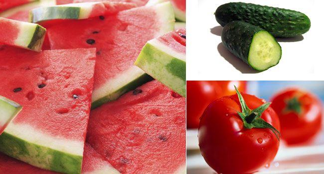 En verano, las temperaturas elevadas propician la pérdida de agua del organismo. La mejor manera de evitar deshidratarnos es bebiendo agua, y las frutas y las hortalizas también pueden contribuir a ello. Las necesidades de agua son de 2.0 L para las mujeres y 2.5 para los hombres, que deben aportarse principalmente a partir del agua de bebida, pero también a partir de otros alimentos como las frutas y hortalizas. Estas necesidades pueden aumentar considerablemente en verano por lo que es importante beber agua cuando se tenga sed y ofrecer agua cada cierto tiempo a niños y mayores pues su mecanismo de la sed no está bien ajustado.